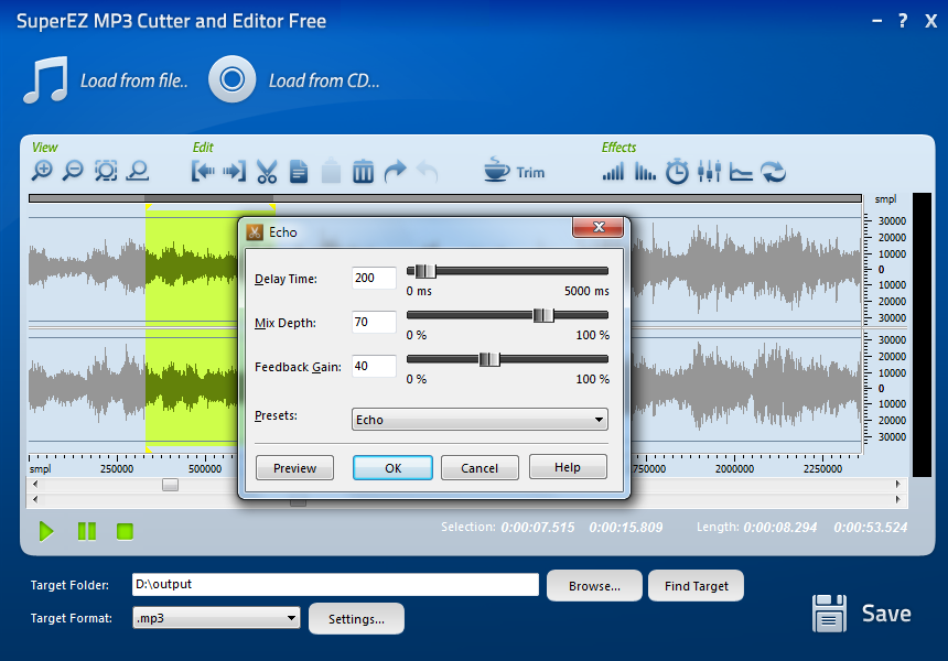 Free MP3 Cutter and Editor - безплатний редактор мп3 фалів і дуже простий. Відредагувати, обрізати, видалити будь який фрагмент мп3 файлу зможе навіть малюк та бабушка. в редакторі можливо змінити гучність, та є різні корисні ефекти. зберегти відредактований мп3 файл можна в форматі мп3 та вав.